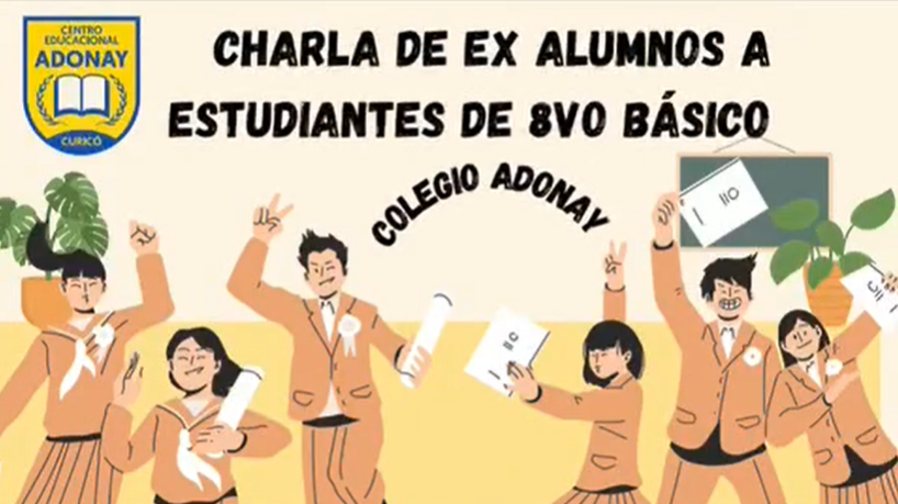 Agradecemos la Charla realizada por exalumnos del centro educacional Adonay, quienes comparten sus experiencias académicas y personales, relatando su paso por el colegio y los aprendizajes adquiridos a lo largo de su trayectoria. A través de sus testimonios, entregan consejos, motivación y orientación a los estudiantes de 8vo básico, destacando la importancia del esfuerzo, la perseverancia para el futuro académico y laboral. Muchas gracias por el compromiso y participación.