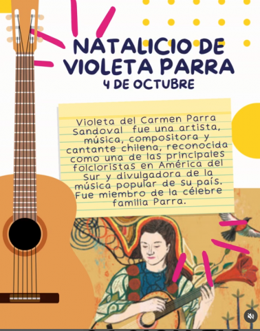 La biblioteca recuerda que el 4 de octubre es Natalicio de Violeta Parra, gran artista chilena, reconocida a nivel mundial.