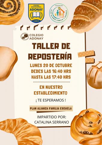 ¡Queremos invitar a todos nuestros apoderados y a la comunidad a disfrutar de un entretenido taller de repostería! ¡Los esperamos con mucho cariño!